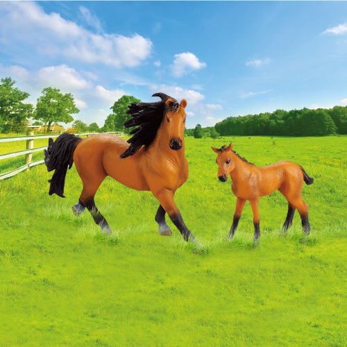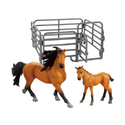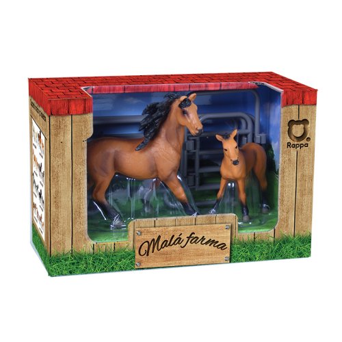 Figúrka koňa a žriebäťa v hnedej farbe s tmavou hrivou. Súčasťou balenia aj ohrada. Ideálne pre milovníkov koní. Táto hračka je súčasťou kolekcie Moja malá farma.
