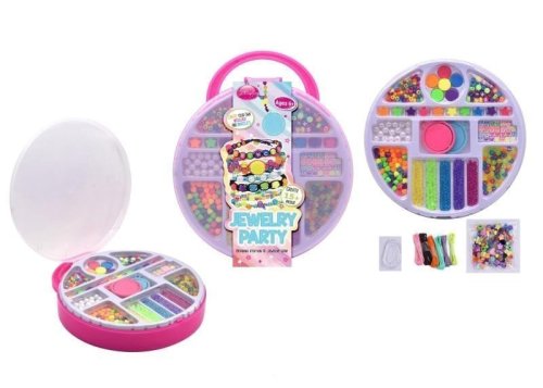 Súprava korálok na výrobu vlastných náramkov a náhrdelníkov. Sada obsahuje korálky rôznych farieb a tvarov, šnúrku. Praktické balenie okrúhleho kufríka s uchom a delenými priehradkami na korálky. Vhodné pre deti od 6 rokov.