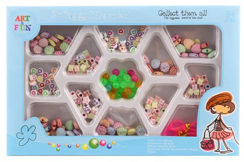 Sada korálikov v krabičke. Materiál plast. V balení rôzne tvary a veľkosti korálikov. V balení povrázok na navliekanie. Rozmery balenia 24x15,5x2,5 cm. Vek 3+ (odporúča sa 5+)