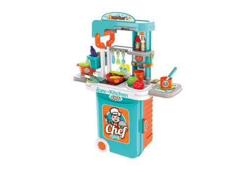 Sada kuchynka v praktickom kufríku na kolieskach je ideálna pre malých kuchárov a kuchárky, ktorí sa chcú vydať na kulinárske dobrodružstvá! Táto multifunkčná kuchynka sa dá rozložiť do stolnej alebo klasickej verzie, čo zaručuje flexibilitu a pohodlie pri hraní. Súčasťou sady je množstvo doplnkov, ktoré zahŕňajú riad, potraviny a ďalšie potrebné predmety na prípravu jedál.