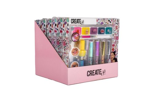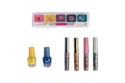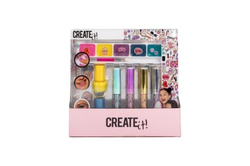 Sada líčenia Creat it Metalic - obsahuje 2 laky na nechty, 4 metalické lesky na pery, malý obojstranný štetec, sada 5 trblietavých tieňov na oči.