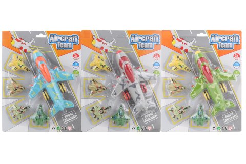 Súprava plastových lietadiel na zotrvačník. Balenie obsahuje jedno veľké a 4 malé lietadlá. Rozmery balenia cca 22,5 x 28,5 x 6 cm. Výrobok nie je na batérie. Vek 3+