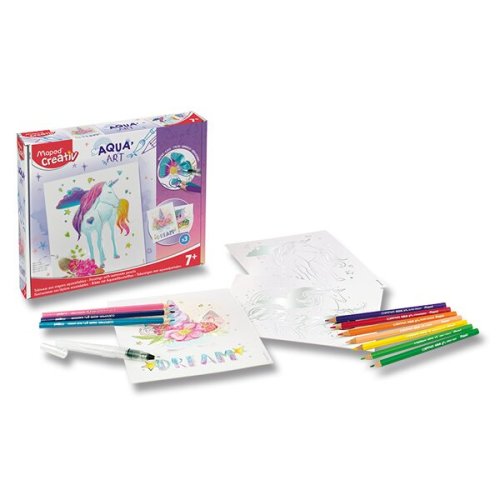 Sada obsahuje:, * 3 predtlačené predlohy, * 10 Aqua pasteliek, * 1 štetec so zásobníkom na vodu, Maped Creativ je kolekcia kreatívnych sád francúzskej značky Maped, tradičného výrobcu kvalitných školských a kancelárskych potrieb. Kolekcia Maped Creativ v niekoľkých radoch ponúka, kreatívne vyžitie pre deti od 1 roku - edícia EARLY AGE, až do veku 6+ - edícia BOARD ACTIVITIES. Edícia MINIBOX je vhodným darčekom pri každej návšteve rodín s deťmi. Edícia COLOR PLAY pre, deti od 4 rokov zas posúva hranice kreatívneho tvorenia k ďalšiemu hraniu.