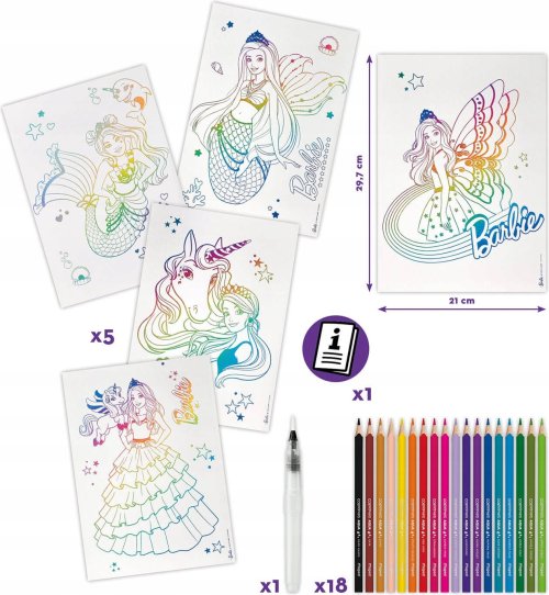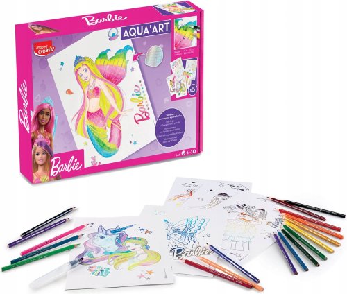 Sada obsahuje:, * 5 predtlačených predlôh s motívmi Barbie, * 18 Aqua pasteliek, * 1 štetec so zásobníkom na vodu, Maped Creativ je kolekcia kreatívnych sád francúzskej značky Maped, tradičného výrobcu kvalitných školských a kancelárskych potrieb. Kolekcia Maped Creativ v niekoľkých radoch ponúka, kreatívne vyžitie pre deti od 1 roku - edícia EARLY AGE, až do veku 6+ - edícia BOARD ACTIVITIES. Edícia MINIBOX je vhodným darčekom pri každej návšteve rodín s deťmi. Edícia COLOR PLAY pre, deti od 4 rokov zas posúva hranice kreatívneho tvorenia k ďalšiemu hraniu.