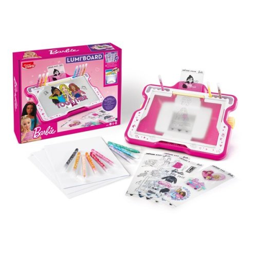 Jedinečná tabuľa slúžiaca ako perfektný nástroj na kreslenie a prekresľovanie. Po výbere šablóny s tématikou Barbie sa šablóna vloží do Lumi Boardu, ktorý šablónu zväčší a podsvieti. S podsvietenými obrázkami je možné vytvárať vlastné kompozície Barbie, jej dom, tašky, doplnky a mnoho ďalšieho. Šablóny sú rozdelené do 5 úrovní obtiažnosti podľa, zručností dieťaťa od tých najjednoduchších ťahov pri nácviku až po tie zložitejšie. Lumi Board je na 4 x LR6/AA batérie., Súprava obsahuje:, * 30 predlôh s obrázkami v 5 úrovniach obtiažnosti, * 12 farebných fixiek, * 20 bielych papierov, BATÉRIE NIE SÚ SÚČASŤOU BALENIA., TIP: Kúpte si ďalšie biele papiere, nech vaše deti pri tvorení . kreatívnych sád francúzskej značky Maped, tradičného výrobcu kvalitných školských a kancelárskych potrieb. Kolekcia Maped Creativ v niekoľkých radoch ponúka, kreatívne vyžitie pre deti od 1 roku - edícia EARLY AGE, až do veku 6+ - edícia BOARD ACTIVITIES. Edícia MINIBOX je vhodným darčekom pri každej návšteve rodín s deťmi. Edícia COLOR PLAY pre, deti od 4 rokov zas posúva hranice kreatívneho tvorenia k ďalšiemu hraniu.