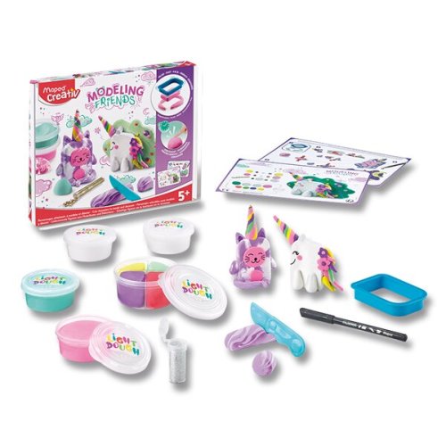 Kreatívna sada na modelovanie pre deti od 5 rokov. Ideálny pomocník na vymodelovanie a ozdobenie roztomilých figúrok jednorožca a mačičky pomocou tvrdnúcej hmoty a priloženého náradia. Vymodelovaná figúrka po 4 hodinách zatvrdne v pevnej dekorácii. Maped Creativ je kolekcia kreatívnych sád francúzskej značky Maped, tradičného výrobcu kvalitných školských a kancelárskych potrieb. Kolekcia Maped Creativ v niekoľkých radoch ponúka, kreatívne vyžitie pre deti od 1 roku - edícia EARLY AGE, až do veku 6+ - edícia BOARD ACTIVITIES. Edícia MINIBOX je vhodným darčekom pri každej návšteve rodín s deťmi. Edícia COLOR PLAY pre, deti od 4 rokov zas posúva hranice kreatívneho tvorenia k ďalšiemu hraniu.