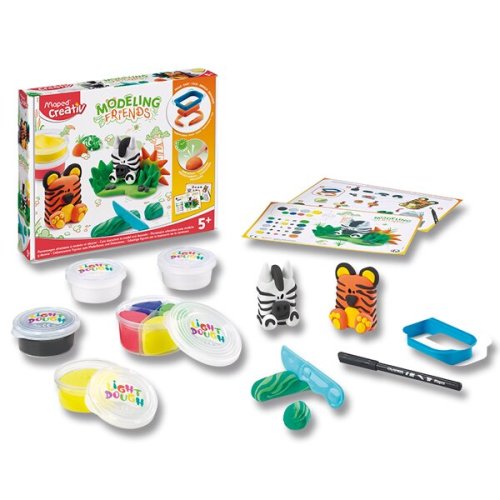Kreatívna sada na modelovanie pre deti od 5 rokov. Ideálny pomocník na vymodelovanie a ozdobenie roztomilých figúrok tigra a zebry pomocou tvrdnúcej hmoty a priloženého náradia., Vymodelovaná figúrka po 4 hodinách zatvrdne v pevnú dekoráciu. g), * čierny fix, * plastový nožík, * 2 farebné predlohy, Maped Creativ je kolekcia kreatívnych sád francúzskej značky Maped, tradičného výrobcu kvalitných školských a kancelárskych potrieb. Kolekcia Maped Creativ v niekoľkých radoch ponúka, kreatívne vyžitie pre deti od 1 roku - edícia EARLY AGE, až do veku 6+ - edícia BOARD ACTIVITIES. Edícia MINIBOX je vhodným darčekom pri každej návšteve rodín s deťmi. Edícia COLOR PLAY pre, deti od 4 rokov zas posúva hranice kreatívneho tvorenia k ďalšiemu hraniu.