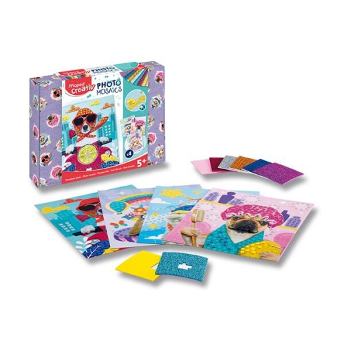 Sada obsahuje:, * 4 predlohy s rôznymi zvieratkami, * 8 farebných hárkov samolepiacich penových mozaikových kociek, Rozmery boxu: 27 x 21 x 5 cm, Maped Creativ je kolekcia kreatívnych sád francúzskej značky Maped, tradičného výrobcu kvalitných školských a kancelárskych potrieb. Kolekcia Maped Creativ v niekoľkých radoch ponúka, kreatívne vyžitie pre deti od 1 roku - edícia EARLY AGE, až do veku 6+ - edícia BOARD ACTIVITIES. Edícia MINIBOX je vhodným darčekom pri každej návšteve rodín s deťmi. Edícia COLOR PLAY pre, deti od 4 rokov zas posúva hranice kreatívneho tvorenia k ďalšiemu hraniu.