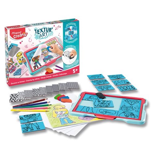 Sada obsahuje:, * 1 kresliacu tabuľku, * 5 farebných kried, * 5 farebných pasteliek, * 15 obojstranných predlôh, * 9 šablón s rôznymi textúrami, * cca 5 listov formátu A4, Maped Creativ je kolekcia kreatívnych sád francúzskej značky Maped, tradičného výrobcu kvalitných školských. ponúka, kreatívne vyžitie pre deti od 1 roku - edícia EARLY AGE, až do veku 6+ - edícia BOARD ACTIVITIES. Edícia MINIBOX je vhodným darčekom pri každej návšteve rodín s deťmi.
