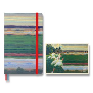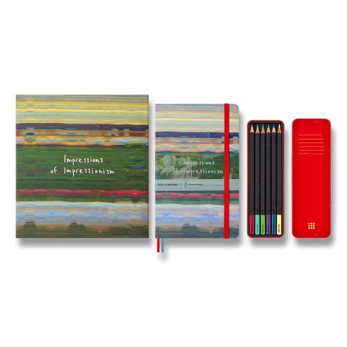 Súprava Moleskine Impressionism obsahuje zápisník veľkosti L a 6 akvarelových pasteliek Moleskine z kolekcie Impressionism.