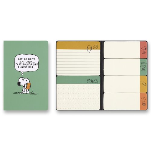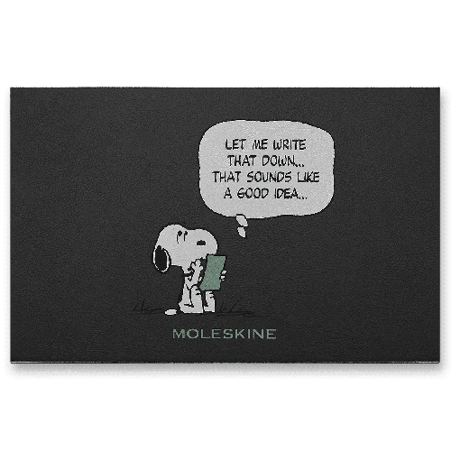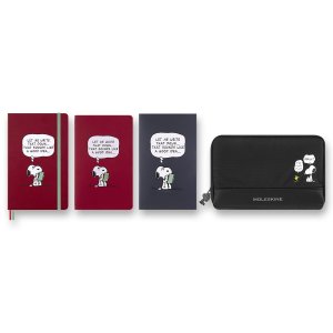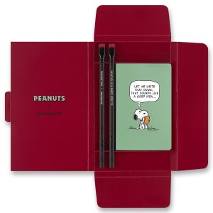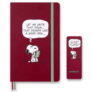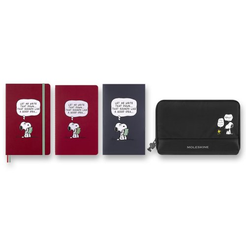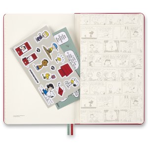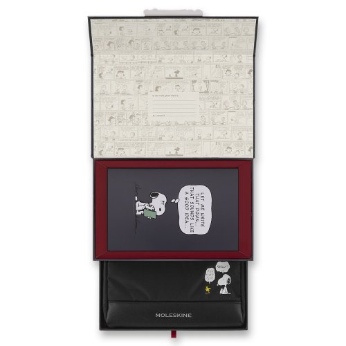 ZÁPISNÍK MOLESKINE PEANUTS - TVRDÉ DOSKY, Zápisník s pevnou, v chrbte šitou väzbou v kartónových doskách potiahnutých látkou obopnuté pružnou páskou proti samovoľnému otváraniu. Zápisník vybavený vreckom na vizitky a drobnosti, ktoré je vyrobené z tkaniny a kartónu, dvojitou textilnou záložkou, 2 listy tematických samolepiek, tematickou záložkou a letákom s históriou MOLESKINE., Gramáž papiera 100 g/m², neobsahuje kyseliny. Papier v slonovinovej farbe, vyrobený z FSC certifikovaného dreva., Rozmer: 13 x 21 cm, 88 listov, linajkový., Zápisník obsahuje 2 listy samolepiek s tematickými motívmi a tematickú záložku., , ZOŠIT CAHIER, Gramáž papiera 100 g/m², neobsahuje kyselín. Papier má slonovinovú farbu a je vyrobený z FSC certifikovaného dreva., Rozmer: 13 x 21 cm, 88 listov, linajkový., , TEXTILNÉ PÚZDRO, Exkluzívne puzdro špeciálne navrhnuté vo veľkosti, aby sa doň vošiel zápisník a zošit veľkosti L., v limitovanej edícii Peanuts s prémiovým japonským grafitovým jadrom a gumou., , Dodávané v kartónovom darčekovom boxe.