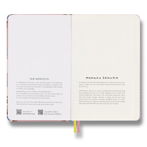 Pevné látkové dosky sú obopnuté pružnou páskou proti samovoľnému otváraniu. Zápisník vybavený vreckom na vizitky a drobnosti, ktoré je vyrobené z tkaniny a kartónu, textilnou záložkou,, listom tematických samolepiek, obálkou s blahoželaním a letákom s históriou MOLESKINE., Zápisník Moleskine Sakura - tvrdé dosky, linajkový, Gramáž papiera 100. Papier v slonovinovej farbe, vyrobený z FSC certifikovaného dreva., Rozmer: 13 x 21 cm, 88 listov, linajkový, Zápisník obsahuje list samolepiek s tematickými motívmi., Zápisník Moleskine Sakura - tvrdé dosky, čistý, Gramáž papiera 100 g/m², neobsahuje kyseliny. Papier v slonovinovej farbe, vyrobený z FSC certifikovaného dreva., Rozmer: 13 x 21 cm, 88 listov, čistý, Zápisník obsahuje list samolepiek s tematickými motívmi., TEXTILNÉ PÚZDRO SAKURA, Textilné puzdro s motívmi diel japonskej manga umelkyne Mokoko Sa8 ZNAČKE MOLESKINE:, Príbeh značky MOLESKINE sa začal písať už v 19. storočí vo Francúzsku, kedy vznikol produkt s veľkou tradíciou. Zápisníky MOLESKINE si obľúbili významní umelci a myslitelia ako Vincent van, Gogh, Pablo Picasso či Ernest Hemingway. Dnes je značka Moleskine synonymom pre kultúru, cestovanie, kreativitu a osobnú identitu, a to ako v reálnom svete, tak aj vo svete digitálnom., MOLESKINE je kreatívnym a nápaditým partnerom pre dnešnú dobu.,