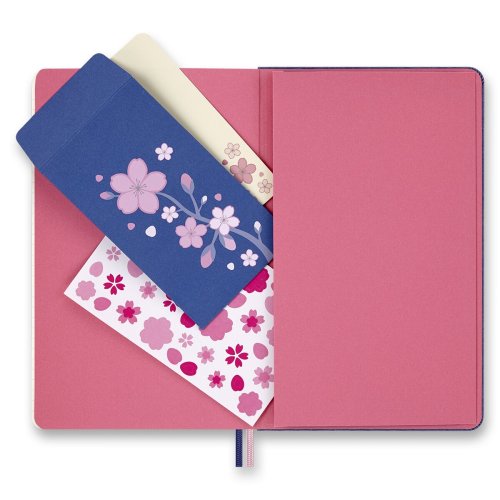 ZÁPISNÍK MOLESKINE SAKURA - TVRDÉ DOSKY, 2 KS, Zápisník s pevnou, v chrbte šitou väzbou v kartónových doskách potiahnutých látkou obopnuté pružnou páskou proti samovoľnému otváraniu. Zápisník vybavený vreckom na vizitky a drobnosti, ktoré je vyrobené z tkaniny a kartónu, dvojitou textilnou záložkou, 2 listy tematických samolepiek, 2 tematickými obálkami a letákom s históriou MOLESKINE. Gramáž papiera 100 g/m², neobsahuje, kyseliny., Gramáž papiera 100 g/m², neobsahuje kyseliny. Papier v slonovinovej farbe, vyrobený z FSC certifikovaného dreva., Rozmer: 13 x 21 cm, 88 listov, 1 ks linajkový + 1 ks čistý, Zápisník obsahuje 2 listy samolepiek s tematickými motívmi a 2 tematické obálky., , GRAFITOVÁ CERUZKA prémiovým japonským grafitovým jadrom a gumou., , Dodávané v kartónovom darčekovom boxe.
