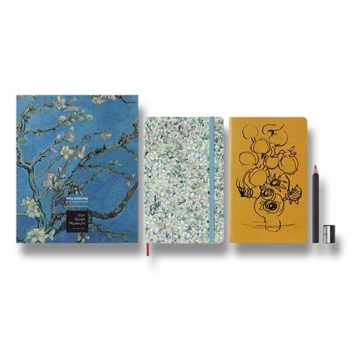 Sada obsahuje:, Zošit Moleskine Cahier Van Gogh - mäkké dosky, Rozmer: 13 x 21 cm, 52 listov, linajkový, gramáž papiera 70 g/m², • vrecko na vizitky a drobnosti, • neobsahuje kyseliny, • textilná záložka, • papier má slonovinovú farbu, • papier má slonovinovú farbu Van Gogh - tvrdé dosky, Rozmer: 13 x 21 cm, 88 listov, nelinkovaný, gramáž papiera 165 g/m², • vrecko na vizitky a drobnosti, • neobsahuje kyseliny, • papier má slonovinovú farbu, • papier vyrobený z FSC certifikovaného dreva, Dodávané v elegantnom kartóne.
