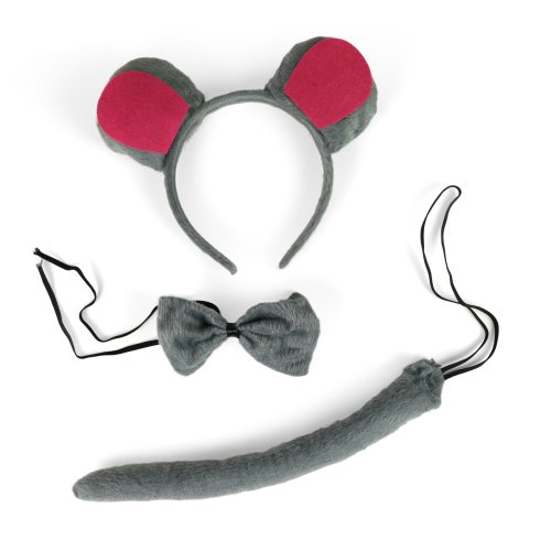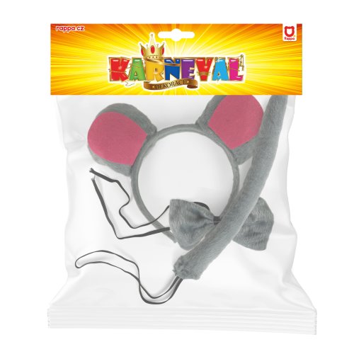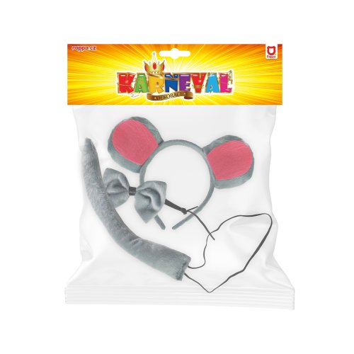 Karnevalové plyšové doplnky v myšom štýle! Exkluzívna sada obsahuje chvost na gumičku, motýlika a čelenku s ušami.