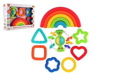 Nádherná súprava pre našich najmenších. Súprava zoznamuje deti s tvarmi, farbami, ale aj s veľkosťami počas hrania. Stavaj, hraj sa a uč sa. Súprava obsahuje 12 dielov.