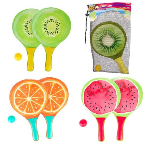 Letná klasika vo farebnom ovocnom štýle! Táto sada na plážový tenis je skvelou voľbou pre aktívnu zábavu pri mori, na záhrade aj na ihrisku. Veselé designy a pevné drevené rakety zaručia hodiny zábavy pre deti i dospelých. Vhodné pre deti od 3 rokov