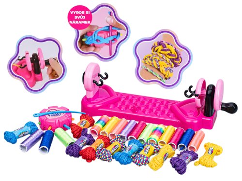 Súprava na pletenie náramkov s pletacím stavom a povrázkami