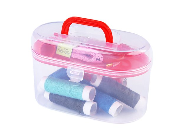 V malej sade na šitie nájdete základné veci, ktoré potrebujete na šitie či na opravu odevu. Box, v ktorom sú šijacie potreby uložené, má vo vnútri odnímateľné poschodie. Obsah sady: - farebné nite (8 ks) - kompaktné balenie ihiel v plastovej krabičke - obojstranný krajčírsky meter - cm, inch (150 cm) - plastový náprstok - 2 ks plastových gombíkov (Ø10 mm) - zväzok spínacích špendlíkov (3 cm) - nožnice