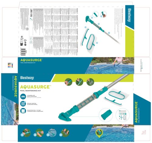 Súprava na údržbu bazéna AquaSurge obsahuje 1× dobíjací bazénový vysávač, 1× kefu, 1× sieťku.