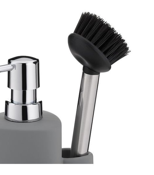 - materiál: keramika - dávkovač s pumpičkou a dve priehradky - čistiaca kefa s flexibilným použitím - výška: 22 cm - rozmery podstavy: 11 x 10 cm