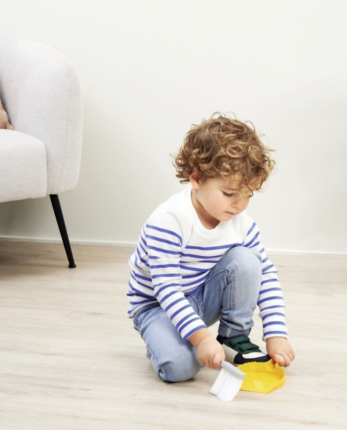 Sada na upratovanie obsahuje kýblik, metličku a lopatku, stierku na sklo a maketu čistiaceho prostriedku.