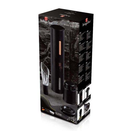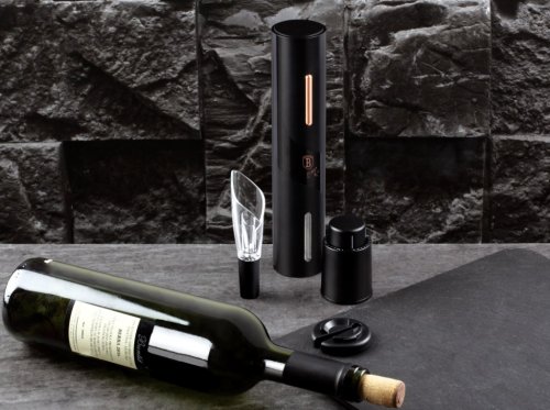 - Obsah sady:- Akumulátorový otvárač na víno, rezačka fólie, lievik na víno + vákuová zátka na víno- Farba: čierno-ružové zlato- Otvárač na víno: - Prevádzka na 4 ks alkalických "AA" batérií (nie sú súčasťou …