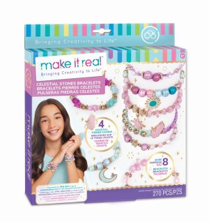 Súprava obsahuje komponenty na výrobu ôsmich náramkov. Oživte svoj svet kreativity a vyrobte si náramky podľa vlastnej predstavy. Sada obsahuje: 3 farebné šnúrky a číru elastickú šnúrku, korálky, perličky, hviezdičky (260 ks) a 4 prívesky. Balené v krabici. Vhodné pre deti od 8 rokov.