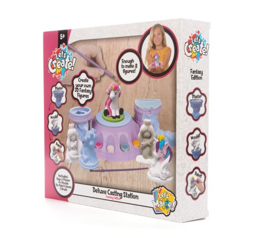 Súprava na výrobu sadrových figúrok Jedorožec DeLuxe – sada obsahuje všetko, čo potrebujú na výrobu 8 detailných figúrok jednorožcov – fantasy, vrátane sadry, formičiek, 5 farieb farieb a štetca. Deti môžu popustiť uzdu svojej kreativite tým, že naplnia formičky sadrou a potom figúrky jednorožko vyfarbia žiarivými farbami. Táto zábavná a vzdelávacia aktivita stimuluje predstavivosť, podporuje jemné motorické schopnosti.