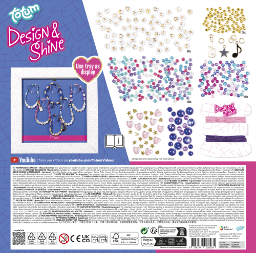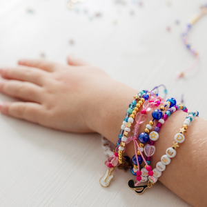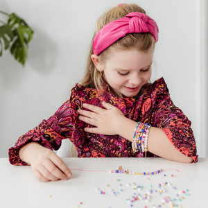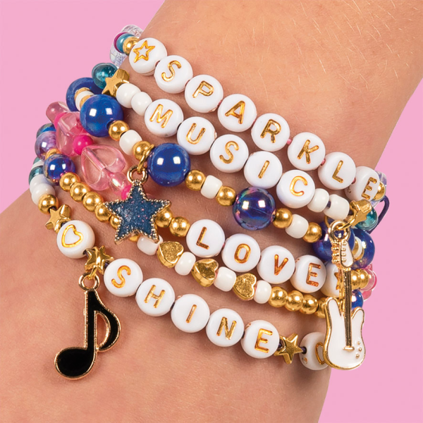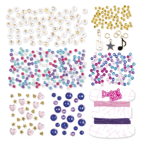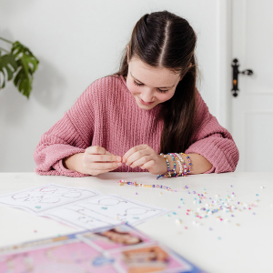Sada na výrobu trblietavých náramkov - táto sada je ideálna pre rozvoj detskej kreativity a jemnej motoriky. Umožňuje deťom vytvoriť si vlastné, originálne šperky, ktorými sa môžu pochváliť. Obsahuje - rôzne druhy korálikov -lesklé, trblietavé a farebné, šnúrky/lanka -materiál na navliekanie náramkov, prívesky - špeciálne ozdobné doplnky pre finálne dotvorenie.