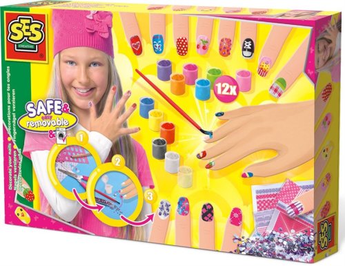 Balenie obsahuje farbičky na nechty, štetec, ceruzku, ampulku s ozdobnými kamienkami, šablónu, papier s rôznymi vzormi, špáradlá a návod.