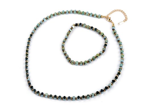 Luxusná sada náhrdelníka a náramku je vyrobená z brúsených korálikov pokovovaného hematitu a kvalitnej nerezovej ocele. Je veľmi elegantný, patrí medzi šperky, ktoré vďaka svojej fascinujúcej povrchovej úprave zaujmú na prvý pohľad. Brúsené plôšky vytvárajú efektné svetelné odlesky. Sada poteší každú ženu, je darčekom, s ktorým nešliapnete vedľa. Hodí sa k slávnostným príležitostiam, skvele podčiarkne aj business štýl obliekania. Náhrdelník sa zapína na karabínku a predlžovaciu retiazku. Náramok má vďaka pruženke univerzálnu veľkosť, ľahko sa natiahne na ruku.