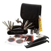 Obsahuje: 15 funkcií multifunkčného náradia a sady na opravu defektu (2 páky na gumy, šmirgľový papier, lepidlo a 6 náplastí)