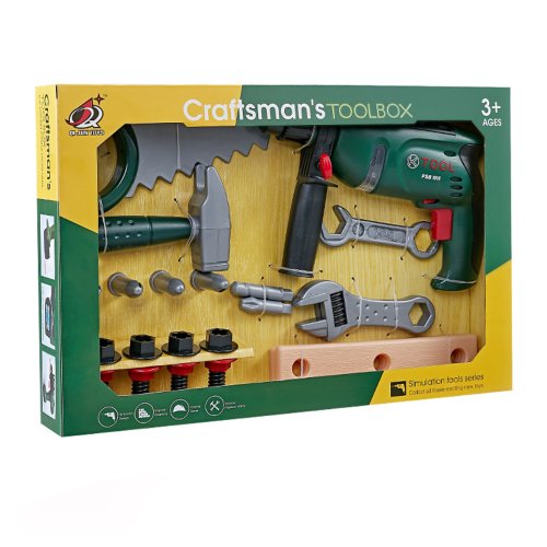 Detské náradie s aku vŕtačkou a ďalším príslušenstvom. Táto sada obsahuje všetko potrebné pre malých domácich majstrov. Okrem aku vŕtačky, ktorá funguje na batérie (2 x 1,5 V AA batérie, nie sú súčasťou balenia), tu nájdeš napríklad kladivko, ručnú pílu, kľúče a ďalšie doplnky.