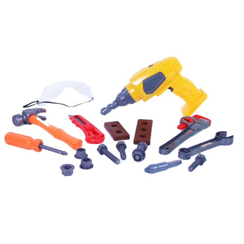 Súprava náradia pre všetkých malých domácich majstrov! Tento praktický set obsahuje všetko, čo malý opravár potrebuje, dokonca aj parádnu funkčnú vŕtačku! Všetko je vyrobené z PVC. Pre funkciu vŕtačky je nutné vložiť 3 ks batérií typu AA, ktoré nie sú súčasťou. Farby náradia sa môžu líšiť.