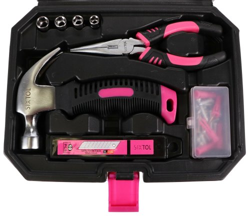 Sada náradia Sixtol HOME PINK 66 sa zapáči každej praktickej žene či kutilovi, ktorý má v obľube ružovú farbu. Vykonáte s ňou drobné opravy v domácnosti. V štýlovom kufríku nájdete celkom 66 kusov náčinia . Využijete ich doma aj v dielni.