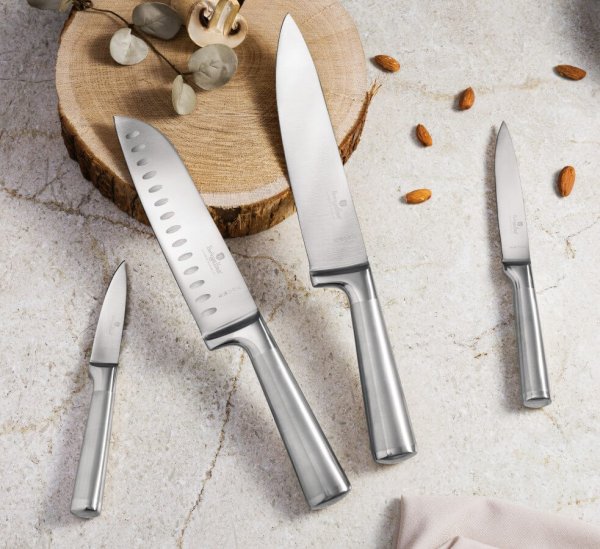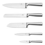 5 nožov z vysoko kvalitnej nerezovej ocele využijete na rozrezávanie a krájanie rôznych potravín. Nájdete medzi nimi kuchársky a pracovný nôž, nôž na chlieb, Santoku a nôž na krájanie. Elegantný dizajn kolekcie Antracit doplní každú kuchyňu.