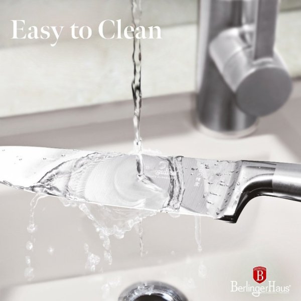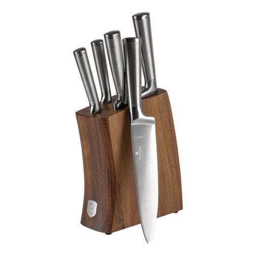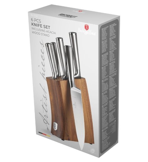 Súprava Berlingerhaus Antracit sa skladá z 5 nožov a stojana s akáciového dreva . Čepele sú ručne ostrené a tepelne spracované. Rukoväť je navyše vybavená ochranou prstov, aby ste sa počas krájania neporezali o vnútornú stranu čepele.