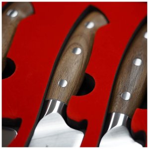 S nožmi Dellinger Walnut zvládnete všetko – od porciovania mäsa až po jemné lúpanie ovocia. Vďaka precíznemu spracovaniu, vyváženej konštrukcii a ručnému brúseniu sa stanú skutočným šperkom vašej kuchyne. Každý nôž padne skvele do ruky, a to ako pravákom, tak ľavákom. Okrem samotných nožov sada obsahuje praktickú kuchynskú vidličku , ktorá umožní pridržať mäso či zeleninu na mieste bez toho, aby Vám pri krájaní utekali po doske. Všetko je prehľadne uložené v luxusnej darčekovej krabici , ktorá robí zo sady ideálny darček pre milovníkov varenia aj profesionálov.