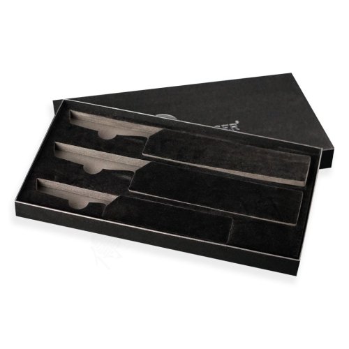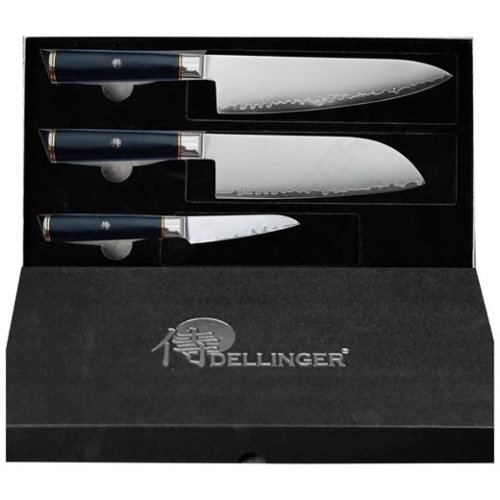 Profesionálna sada nožov, ktorá vyniká dizajnom aj výkonom. Dellinger Okami 3-layers AUS10 ponúka jadro z japonskej ocele AUS-10 (HRC 58–62) , matnú stonewashed úpravu a precízne ostrie s uhlom brúsenia 15 ° . V sade nájdete tri najpoužívanejšie nože – Chef, Santoku a okrajovacie, elegantne uložené v darčekovej krabičke.