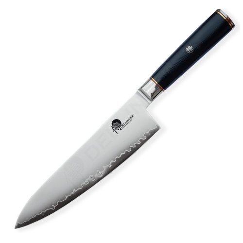 Sada Dellinger Okami vznikla pre tých, ktorí hľadajú maximálnu kontrolu, ostrosť a odolnosť . Jadro z japonskej ocele AUS-10 je vložené medzi dve vrstvy nerezovej ocele, čím vzniká robustná a zároveň flexibilná čepeľ. Povrchová úprava typu stonewashed skrýva jemné škrabance a pôsobí elegantne. Nože sú brúsené v uhle 15 °, vďaka čomu ľahko krájajú aj jemné suroviny bez deformácie. Rukoväte z materiálu G-10 sú ergonomické, pevné a ozdobené štýlovým mozaikovým nitom so samurajským znakom .