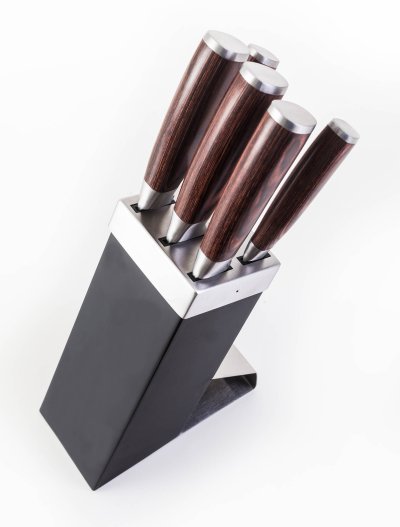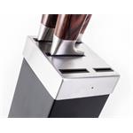 Neviete kam nože bezpečne uložiť? Do stojanu! Súčasťou sady je dizajnový stojan v čierno-striebornom prevedení. V stojane má každý z nožov svoje bezpečné miesto.
