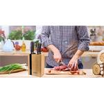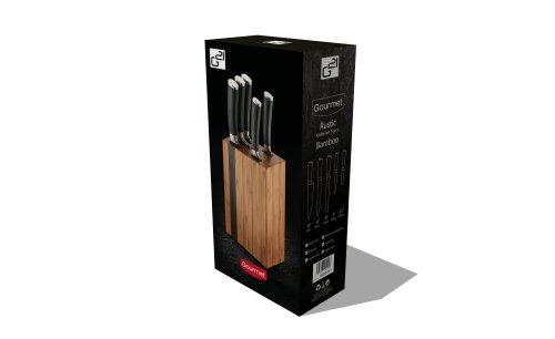 Správna starostlivosť o kuchynské nože predĺži ich životnosť a ostrosť čepelí. Základom správnej starostlivosti o nože je ich vhodné ukladanie – ideálne do stojana na nože . Preto k sade nožov G21 Gourmet Rustic dostanete aj originálny blok na nože z vysoko odolného bambusového dreva s elegantnou čiernou kovovou lištou na čelnej strane stojana na nože.