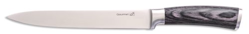V sade nožov G21 Gourmet Rustic nájdete nôž šéfkuchára 21 cm, krájací nôž 21 cm, nôž na chlieb 21 cm, univerzálny nôž 13 cm a krájací nôž 9 cm. Všetkých 5 nožov je z kvalitnej ocele 5CR15 , ktorá sa používa aj na výrobu loveckých nožov.