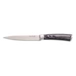 Vďaka použitému materiálu je čepeľ ostrá, odolná, pevná a bude vám slúžiť dlhé roky. Rukoväte sú vyrobené z extra pevného, odolného materiálu nazývaného Pakka wood, pri výrobe ktorého je dyha z tvrdého dreva napustená teplom tvrdenou živicou. Výsledkom sú pevné rukoväte , ktoré nepodliehajú skaze času . Hladké, rovné, čisté línie týchto nožov sa stanú ozdobou každej kuchyne.