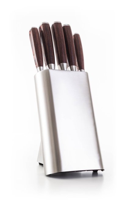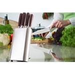 Neviete kam nože bezpečne uložiť? Do stojanu! Súčasťou sady je dizajnový stojan v striebornom prevedení . V stojane má každý z nožov svoje bezpečné miesto.