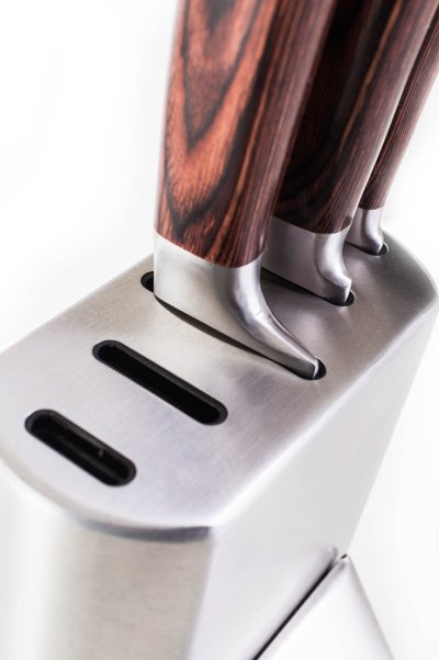 Rukoväte sú vyrobené z extra pevného, odolného materiálu nazývaného Pakka wood , pri ktorého výrobe je dyha z tvrdého dreva napustená teplom tvrdenou živicou . Výsledkom sú pevné rukoväte, ktoré nepodliehajú skaze času. Hladké, rovné, čisté línie týchto nožov sa stanú ozdobou každej kuchyne.