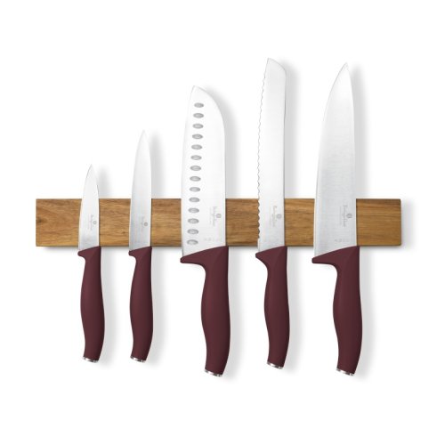 Prineste do svojej kuchyne sofistikovaný štýl a maximálnu funkčnosť s touto elegantnou sadou 6 nožov v hlbokom tóne matnej bordó , doplnenú o luxusný magnetický vešiak z agátového dreva . Spojenie moderného dizajnu a prírodného prvku vytvára dokonalú rovnováhu krásy a praktickosti.