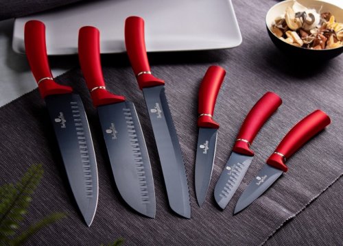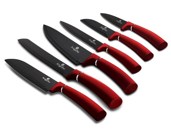 Súprava nožov s nepriľnavým povrchom 6 ks Burgundy Metallic Line BH-2542