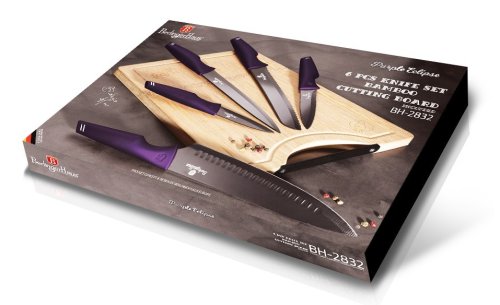 Sada nožov s nepriľnavým povrchom + doštička 6 ks Purple Eclipse Collection je výbornou alternatívou pre kuchárov rôznych úrovní, na ktorej výrobu bol použitý kvalitný materiál: nerez oceľ s nepriľnavým povrchom, vynikajú perfektnou ostrosťou čepele a dizajnom . Veľmi oceníte aj ergonomicky tvarovanú rukoväť , vďaka ktorej sa vám nože budú skvele držať. Celá sada je dielom výrobcu BERLINGERHAUS, ktorá sa výrobe nožov venuje pomerne dlho a sú riadne odskúšané.